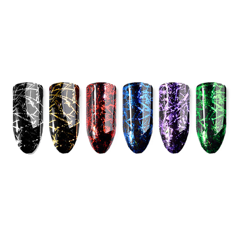 New Metallic Tinsel Foil in Silver. A special fringed thin foil that will add an unique look on the nails. Easy to use and looks great with our Velvet Matte No-Wipe Gel Top Coat!