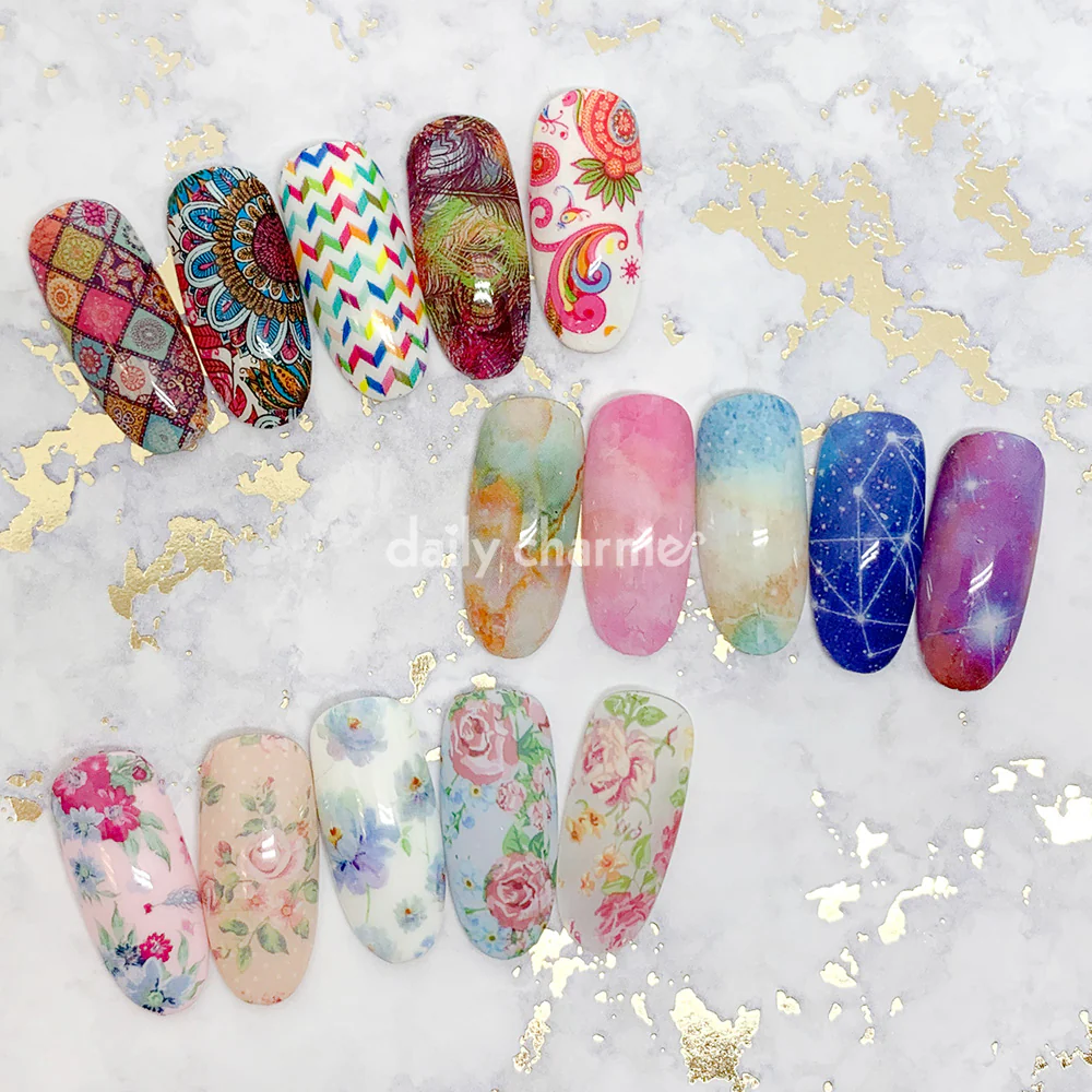 A box of 10 different romantic roses / floral pattern nail art foil papers. Perfect for any floral nail lovers! Easily apply foils with our bestselling Foil Transfer Gel!